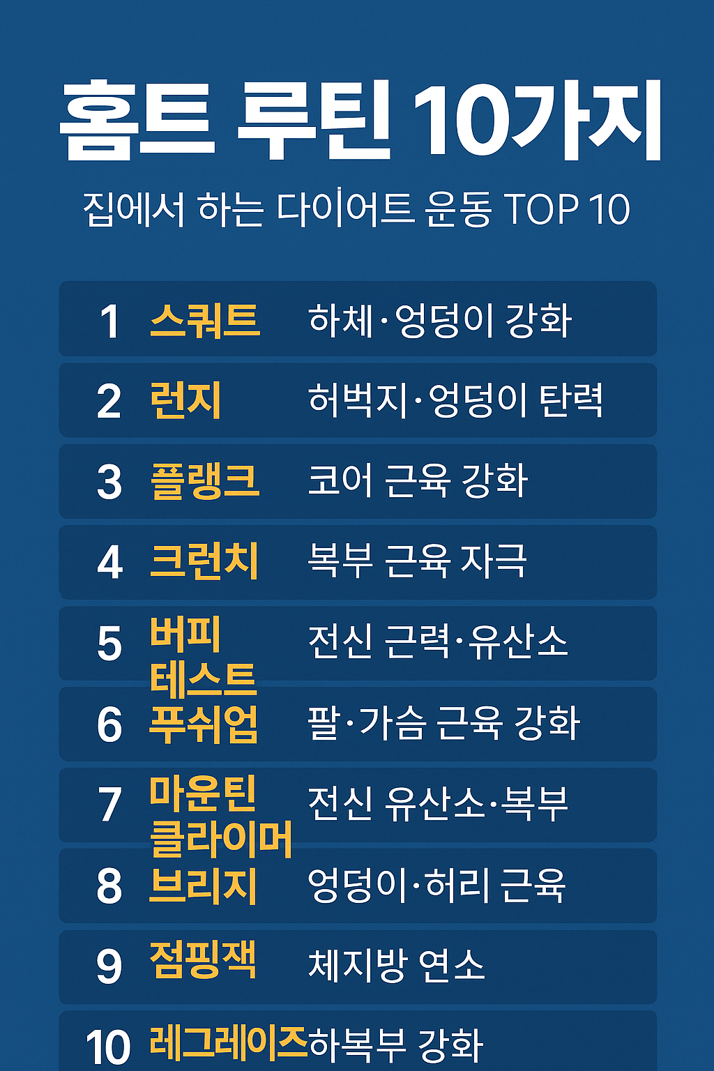 효과 좋은 홈트 루틴 10가지 따라 해보자